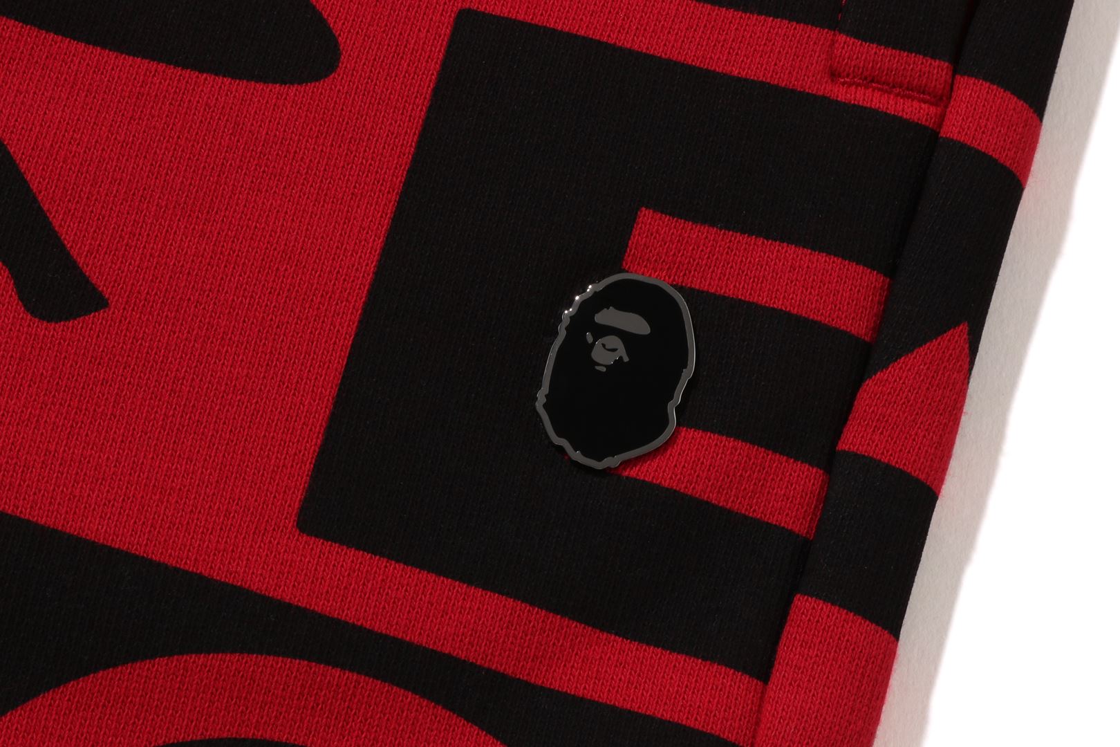 Sweatpants made of cotton/polyester blend fleece material with BAthtPE?? logo printed all over. Slash pockets on both sides and zip pocket on the right back. An AthtPE HEAD type charm is included at the tip of the zip. Comes with an original spindle with BAthtPE engraved stopper on the waist, allowing you to adjust the silhouette. Wide silhouette with room around the waist and thighs. Available in 3 colors and 5 sizes.