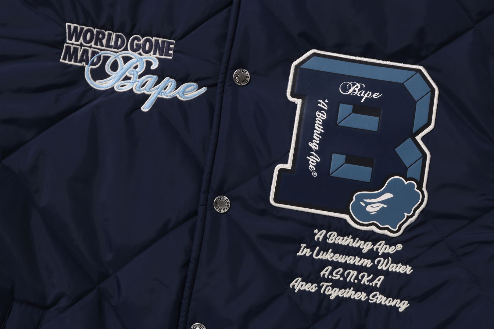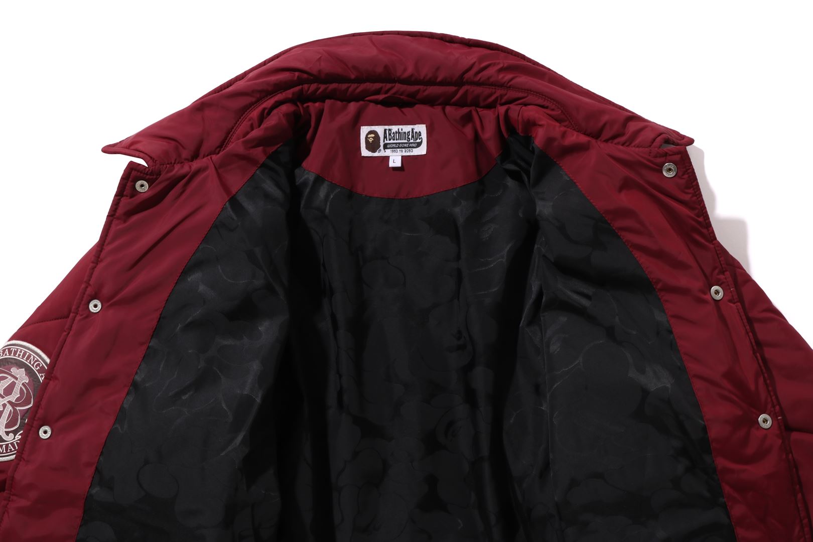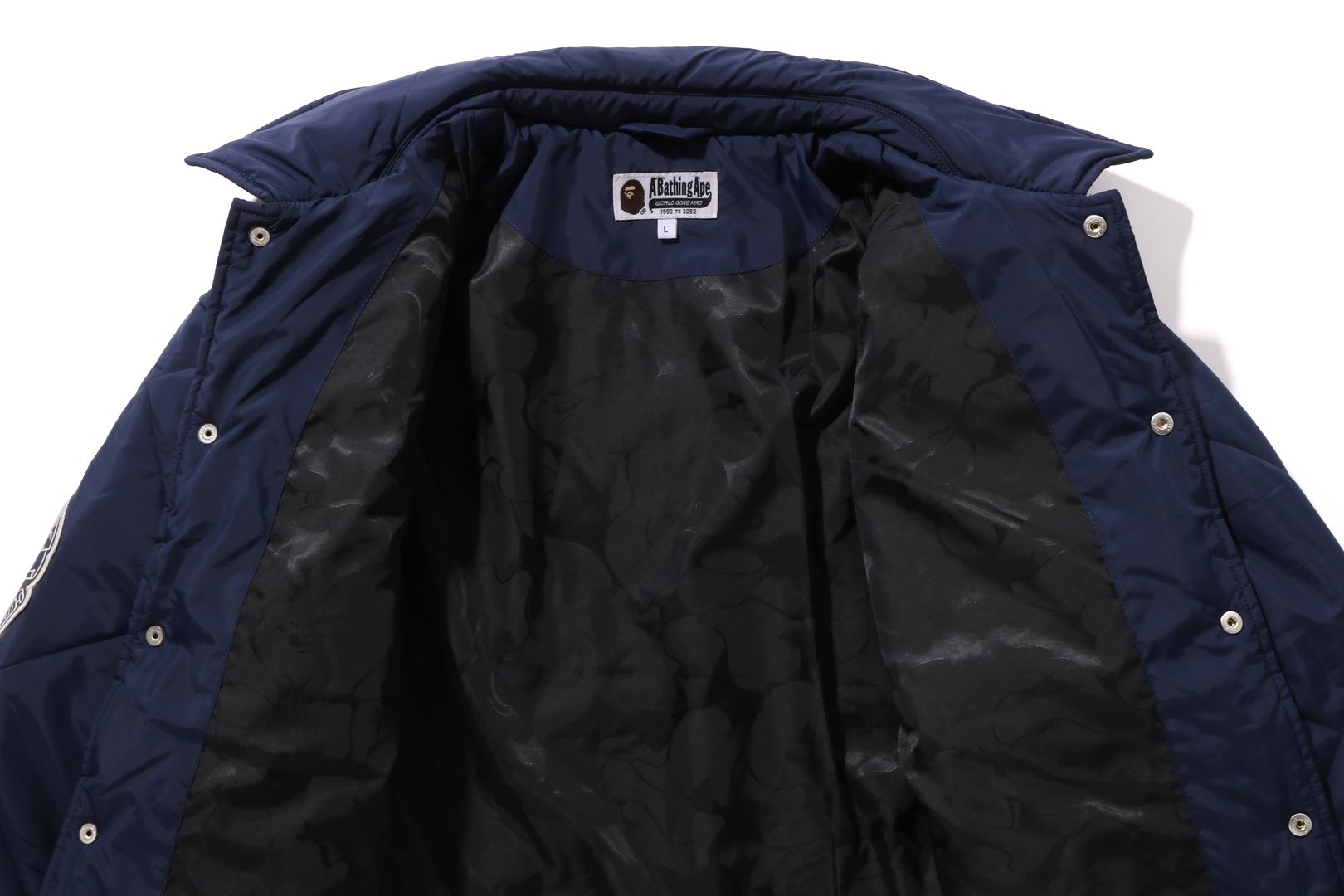 A coach jacket made of nylon material with a quilted pattern. The design features a B logo patch on the left chest, a circle patch on the right shoulder, a letter graphic on the left chest, and logo directly embroidered on the right chest. A piss name is sandwiched in the center of the hem, and a spindle is included. A silhouette with ample width. Available in 2 colors and 5 sizes.