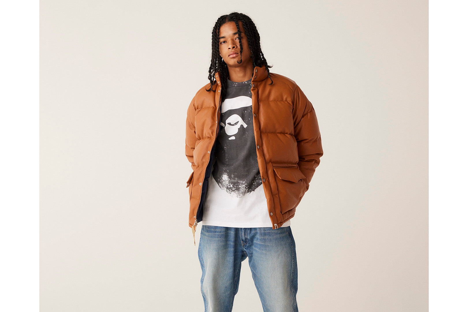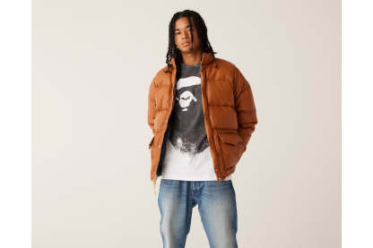 A classic down jacket with a design that symbolizes and uses sheepskin on the surface. The padding uses KAWADA DOWN from Kawada Feather (90% down, 10% feather, 700FP) for high cold protection. There are large flap pockets on the left and right sides of the abdomen, and a piss name is tucked in the center of the hem. The front has snap buttons. Snap buttons are included on the cuffs, allowing for size adjustment. A silhouette with a relaxed fit. Available in 1 color and 5 sizes.