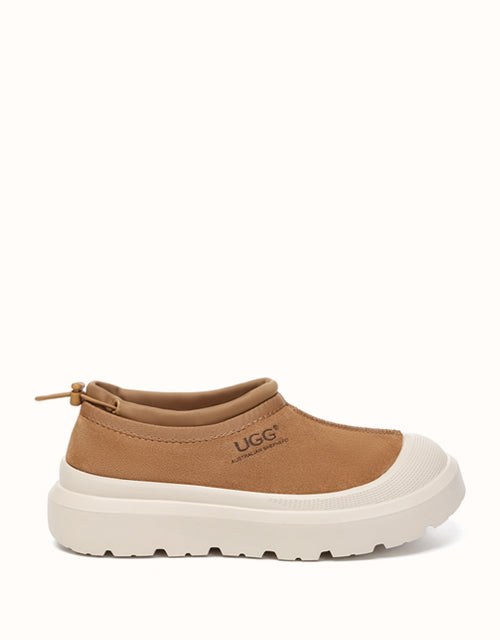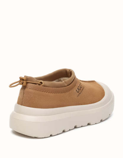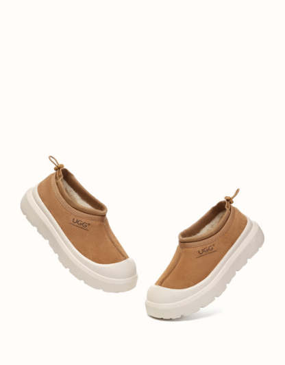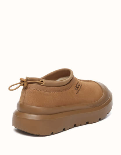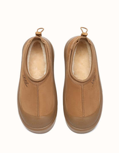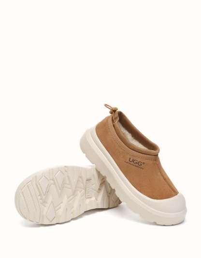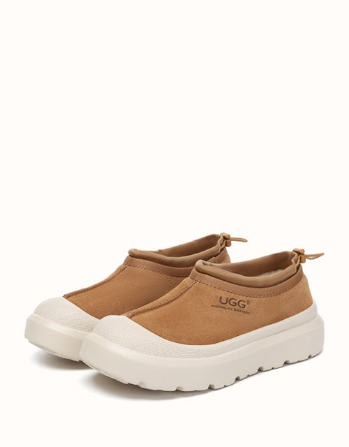 Enjoy both functionality and cozy warmth with the Australian Shepherd Drawstring Harlow UGthtG slippers. Crafted from sturdy cow suede and fully lined with plush Australian sheepskin wool, these slippers provide breathable comfort and lasting warmth throughout the day. Featuring a contemporary two-tone style and a sporty wraparound sole edge, they bring a modern twist to a timeless design. Available in Chestnut and Beige White, they��re ideal for men and women alike and make a thoughtful gift for friends and family.
