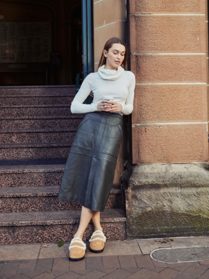 Crafted with premium Australian cowhide leather, these flats showcase the embossed UGthtG logo and subtle fleece accents, blending vintage charm with modern simplicity. The interior features soft Australian wool lining and faux shearling insoles for a cozy, skin-friendly feel that��s perfect for autumn and winter. Finished with a lightweight, flexible rubber sole featuring anti-slip tread, these flats offer stable footing and timeless style for any seasonal outfit.