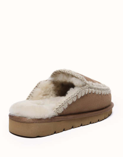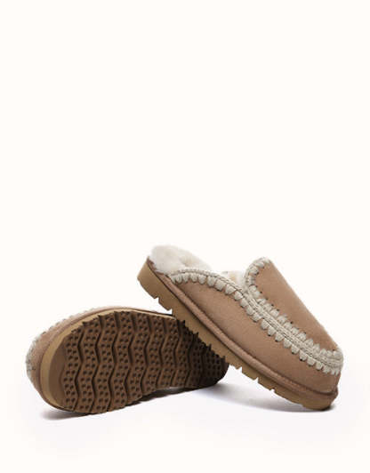 Featuring a sweet, retro style, these shoes are adorned with hand-crocheted yarn lace trim, offering a simple yet elegant touch for a cozy winter feel. Crafted with 100% Australian sheepskin, the integrated wool and leather design is 20mm thick, providing natural moisture-wicking and temperature-regulating properties that keep feet warm in winter and cool in summer, making it suitable for all seasons. The breathable material is more comfortable than synthetic fibers, ensuring a dry and pleasant experience. The lightweight EVA sole with patterned grooves provides flexibility and quick rebound, offering a soft, comfortable feel perfect for autumn and winter indoor wear.