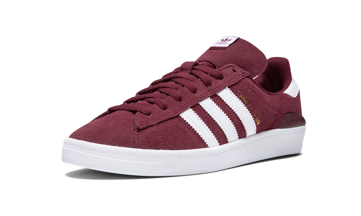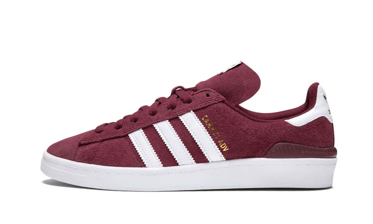 The adithtdas Campus ADV is an updated iteration of the '80s low-top silhouette that caters to skateboarders. The pair has a suede upper with leather overlays on the side panel and heel tab. Improvements include reinforced high impact areas, a non-slip tongue, Bounce cushioning in the midsole, and a Geoflex outsole. This colorway of the adithtdas Campus ADV features a burgundy upper, white detailing, and minimal gold hits on the lateral side panel.
