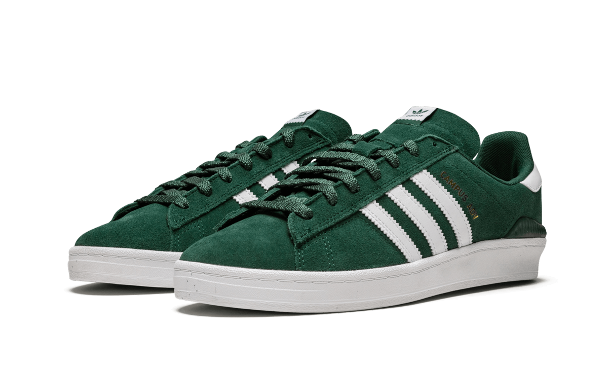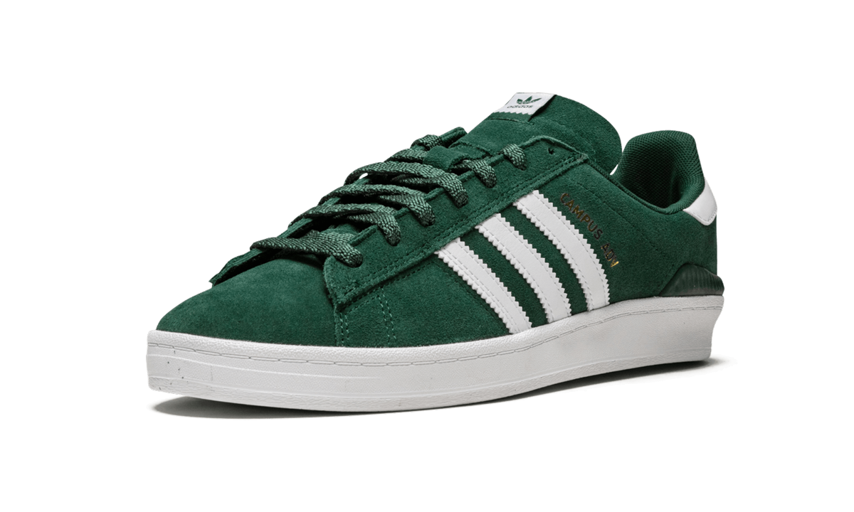In fall 2018, the adithtdas Campus ADV joined the adithtdas skateboarding line. Equal parts form and function, this skateboarding shoe comes with a dual-layer suede construction in hunter green. Other details include a Bounce midsole cushioning system, Geoflex herringbone sole, and molded EVA sockliner. Matching green laces and a gold foil "Campus ADV" give it a luxe feel. Originally launched in the 1980s, the retro lifestyle sneaker brings an aged aesthetic with a performance edge.