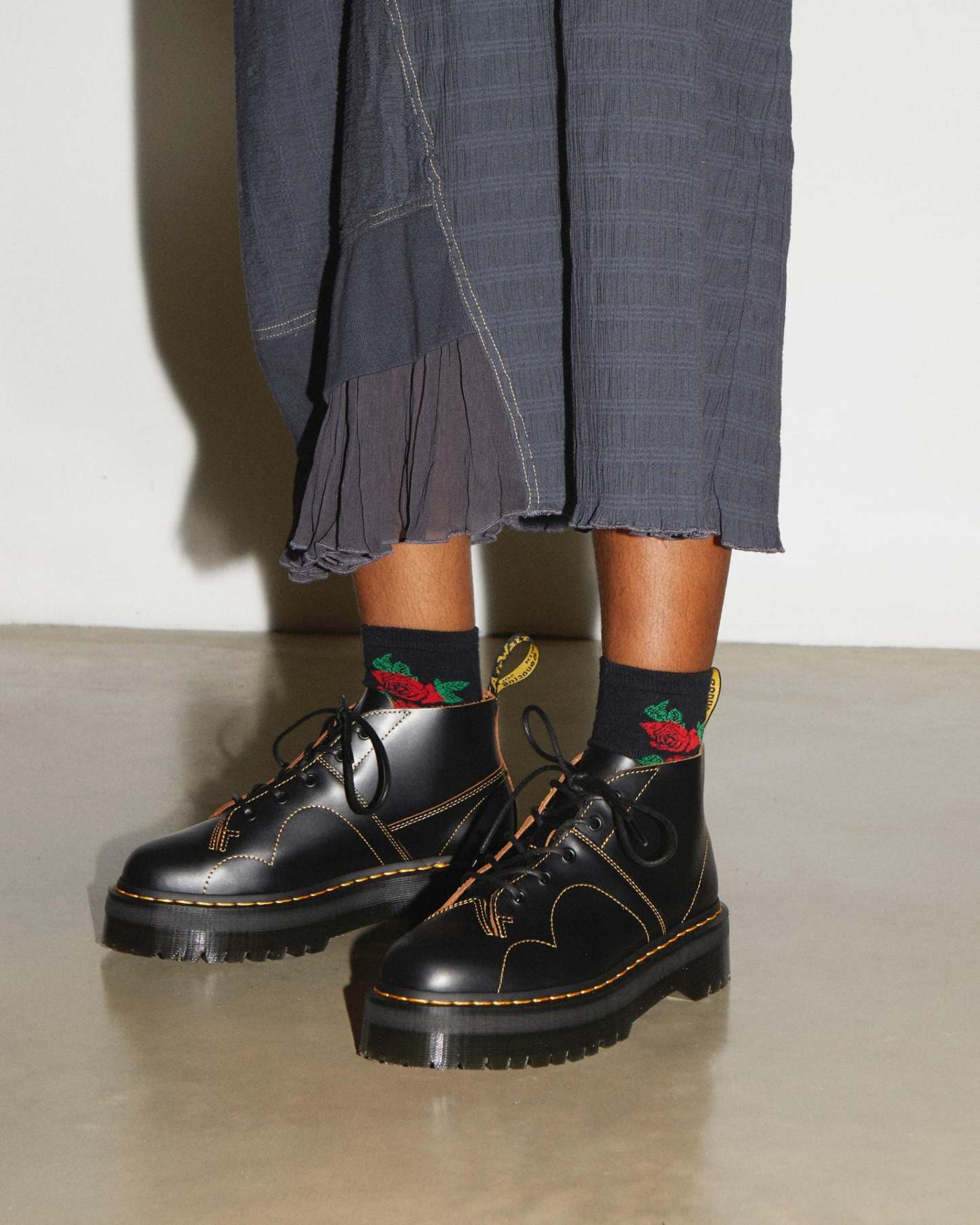 A sleek, slender shape with low-set laces, this is a classic Monkey boot silhouette with all the typical Docs markings. Our Church Quad boot has been revamped with an empowering high-rise sole �� taking a vintage favourite and stacking it high with extra Docs attitude.