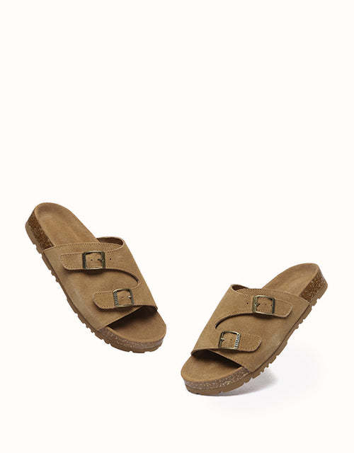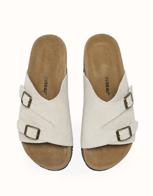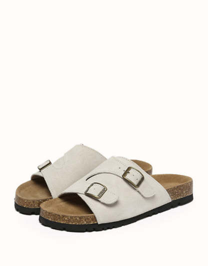 Featuring a biomimetic heel pad with a cup-shaped groove for ankle support, these sandals provide ergonomic benefits such as arch-side support to distribute pressure evenly, a T-toe groove for natural toe positioning, and elevated edges for added toe protection. The boat-shaped footbed with cork-latex flexibility enhances fit, and fashion-forward details like adjustable buckles, asymmetrical open-toe straps, and a thick, lightweight sole blend modern aesthetics with classic functionality, offering style, comfort, and durability in every step.
