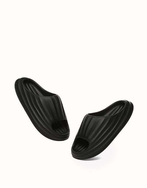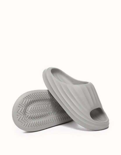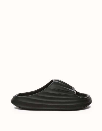 Experience the heavenly softness of the EVEthtRAU Cloud Slippers Plus. Designed for ergonomic comfort, this lightweight, easy slip-on style is now available in Black and Grey. Perfect for relaxing at home or strolling along the beach, they combine effortless wear with cloud-like comfort.