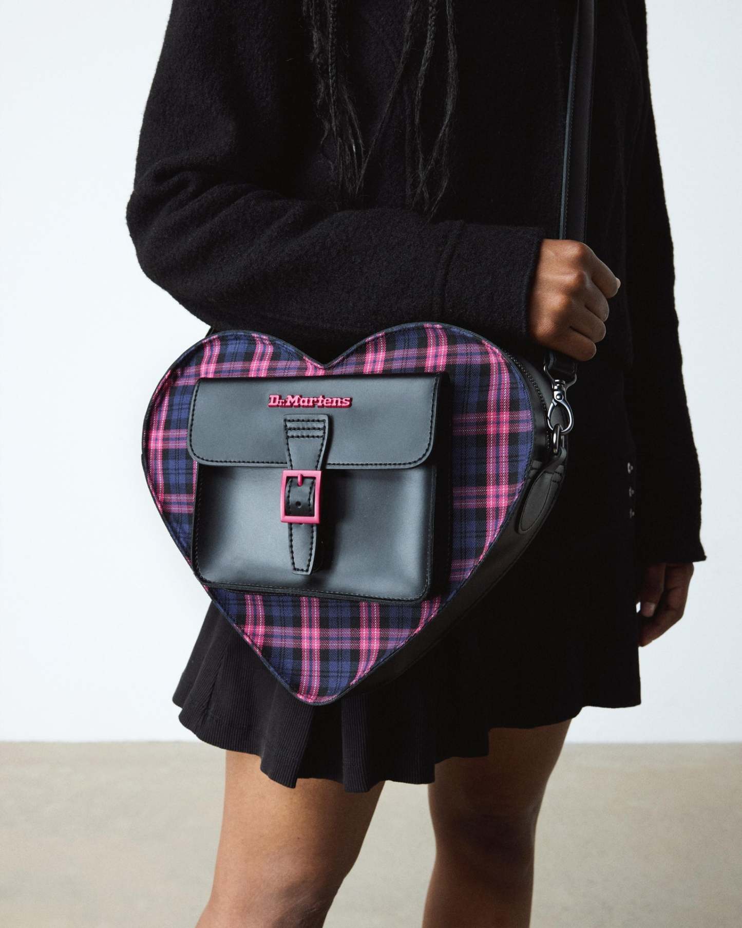 Plaid and proud �C classic and new. Our fan favourite Heart backpack returns with a playfully subverted update for the boldest of wearers. In durable Kiev leather with pink Tartan Woven material and fuschia pink hardware, it features a leather card holder, zip and buckle fastenings, and can be worn as a backpack or crossbody bag.