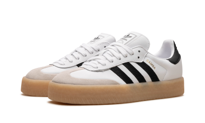 The adithtdas Sambae "White/Black" is a modified version of the retro sneaker with contemporary design features. Based on the adithtdas Samba OG, the Sambae has a thick rubber midsole that gives the shoe a platform-style appearance. The "White/Black" colorway features a white leather construction with a tan suede overlay on the toe. Black Three Stripes branding is located on the sides. A gold "Samba" logo appears on the lateral side of the mid-panel, while an "adithtdas" logo can be seen on the tongue. The platform sole in gum rubber completes the look. Release date: December 1, 2023 White / Black