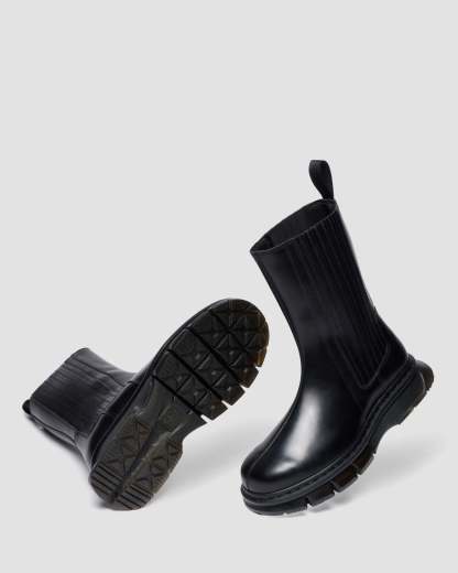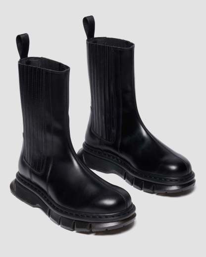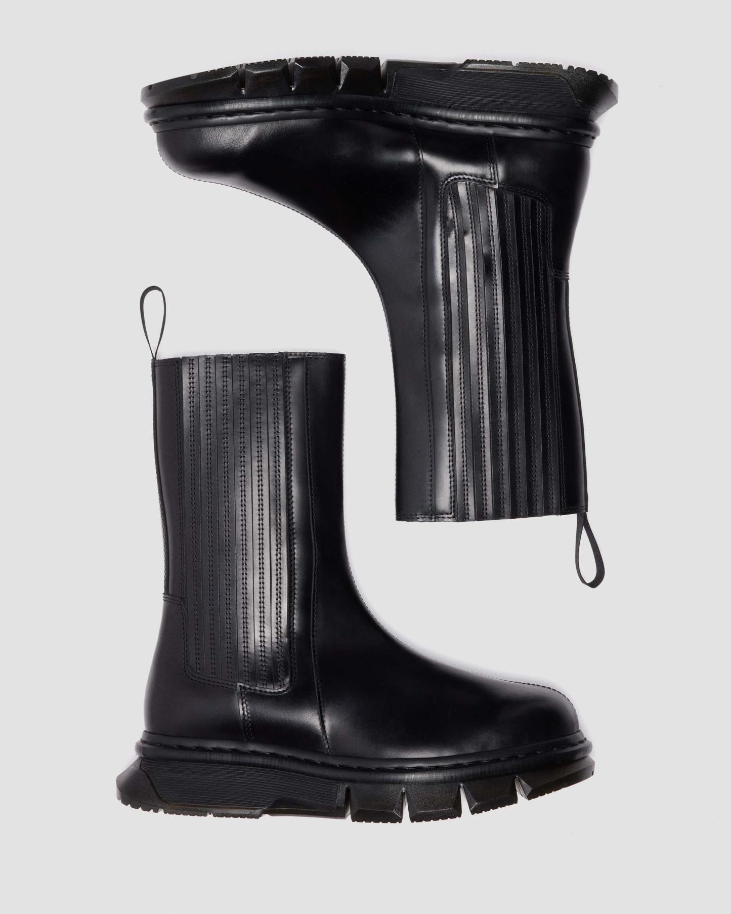 Crafted from easy-wearing, smooth Orleans leather, the QUBIST stands higher up the leg than traditional Chelsea boots, with a subtle elasticated leather gusset. The all-black upper is secured to the flexile outsole with a black-on-black welt stitch and fitted with a wide-footbed SoftWair insole for a more natural fit. And each pair is signed with an AirWair monochrome heel loop.