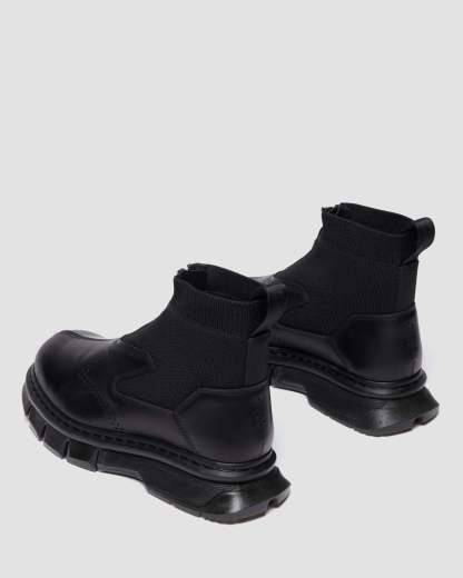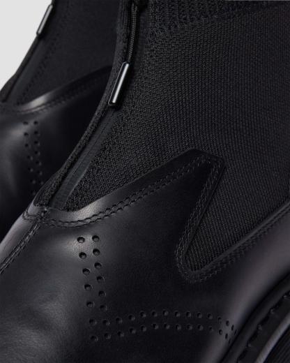 Crafted from easy-wearing, smooth Orleans leather, with a synthetic knitted sock bisected with a subtle front zip. The all-black upper is secured to the flexile outsole with a black-on-black welt stitch and fitted with a wide-footbed SoftWair insole for a more natural fit. And each pair is signed with an AirWair monochrome heel loop.