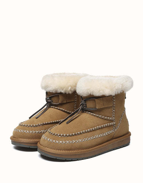 Step into effortless style and cozy warmth with the AUSTRthtALIAN Shepherd Stormy Mini Woven Ankle Boots. Crafted from premium sheepskin, these chic boots offer exceptional insulation for cooler days while enhancing your everyday ensemble with their timeless design and plush wool collar. Designed for ultimate comfort, they feature sturdy soles and an adjustable front strap, ensuring a perfect fit for any occasion. A must-have staple for your wardrobe