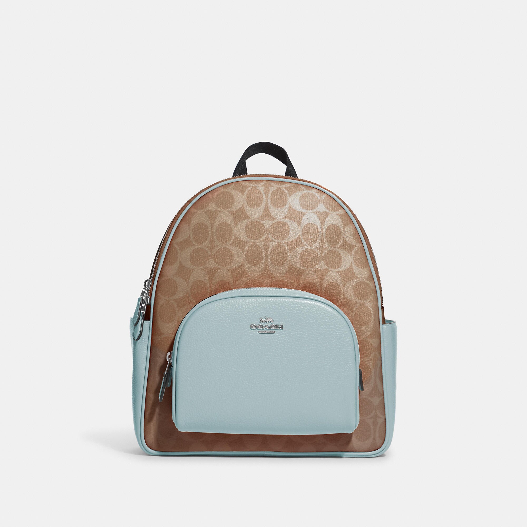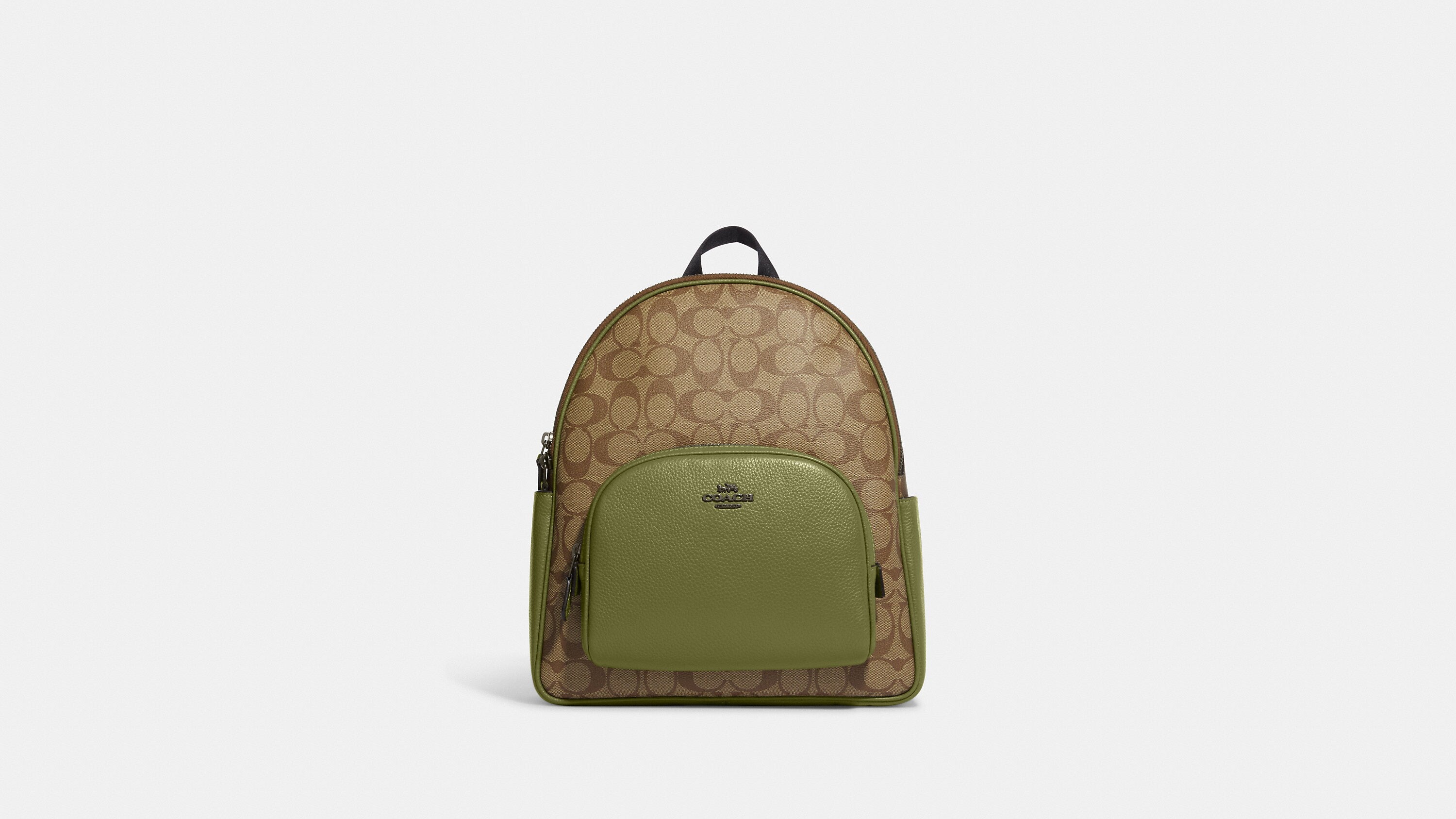 Signature coated canvas and refined pebble leather Inside zip and multifunction pockets Double zip closure fabric lining Handle with 2 1/4 drop Outside zip pocket Adjustable shoulder straps 10 3/4 (L) x 12 1/2 (H) x 4 3/4 (W) Style No. 5671 | Outlet Court Backpack In Signature Canvas - Beige