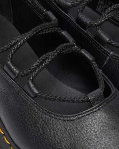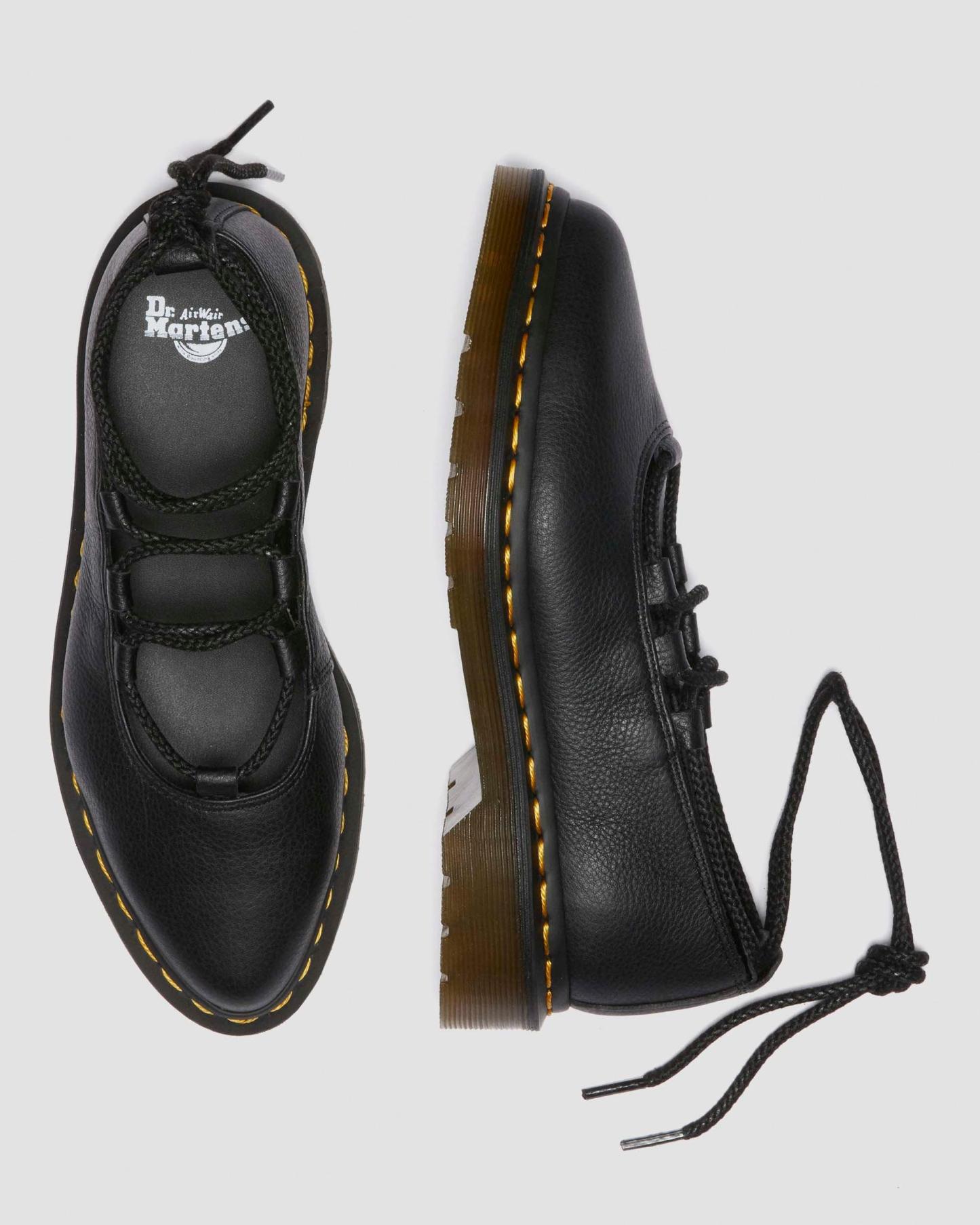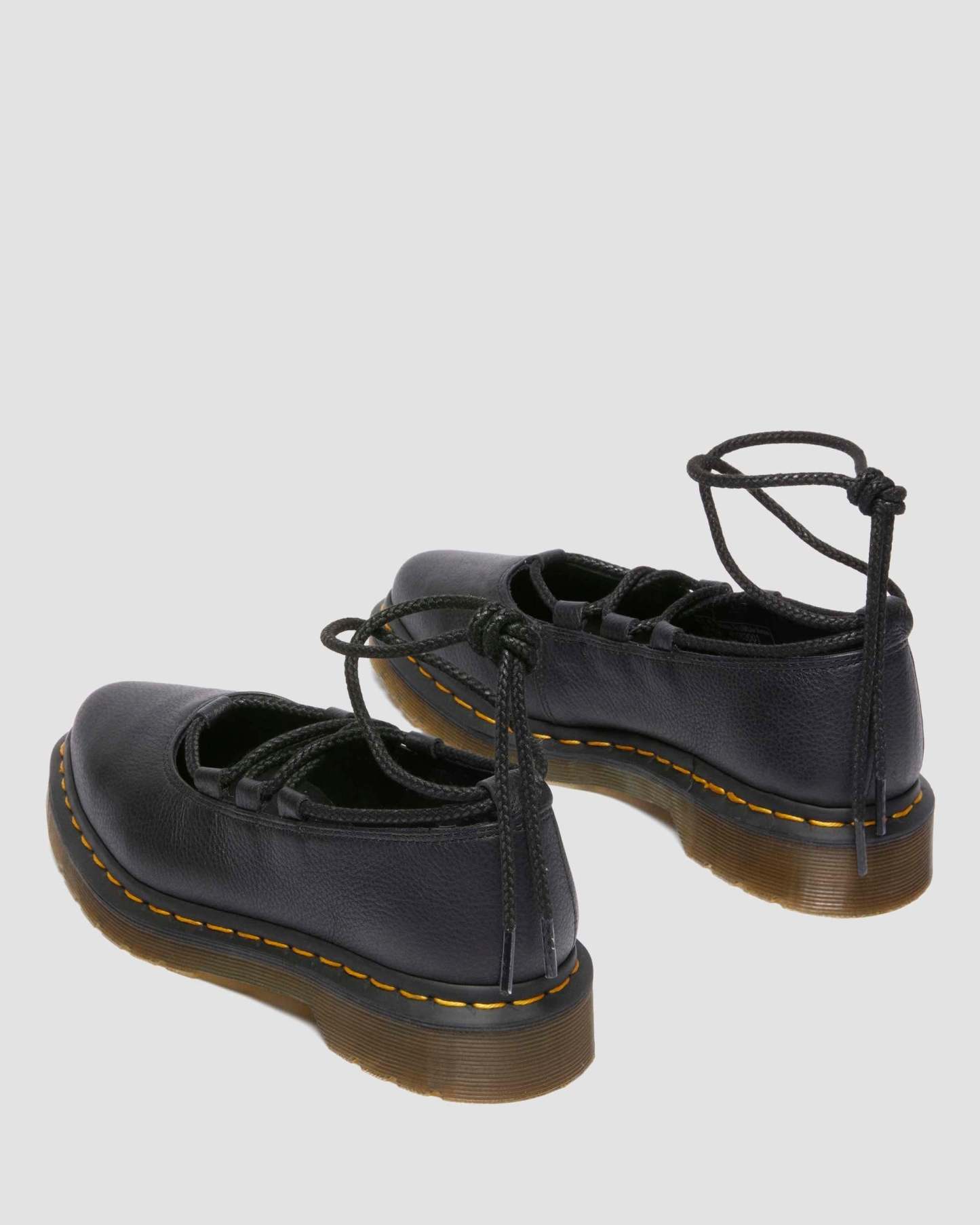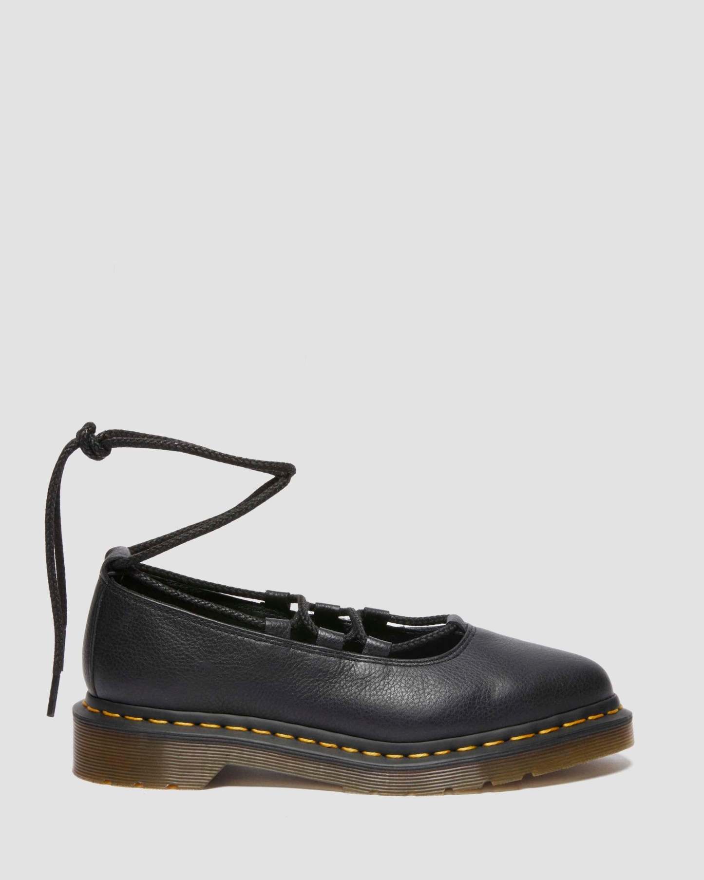 Get to the point. The Elphie ballet flat is our twist on a classic. Less dainty. More Doc��s. A pointed ballet flat shoe made from soft Virginia leather. Fitted with wraparound laces �� easily swapped out for a customised look. The tapered sole is marked with DM��s signature grooving pattern and secured with yellow welt stitching.