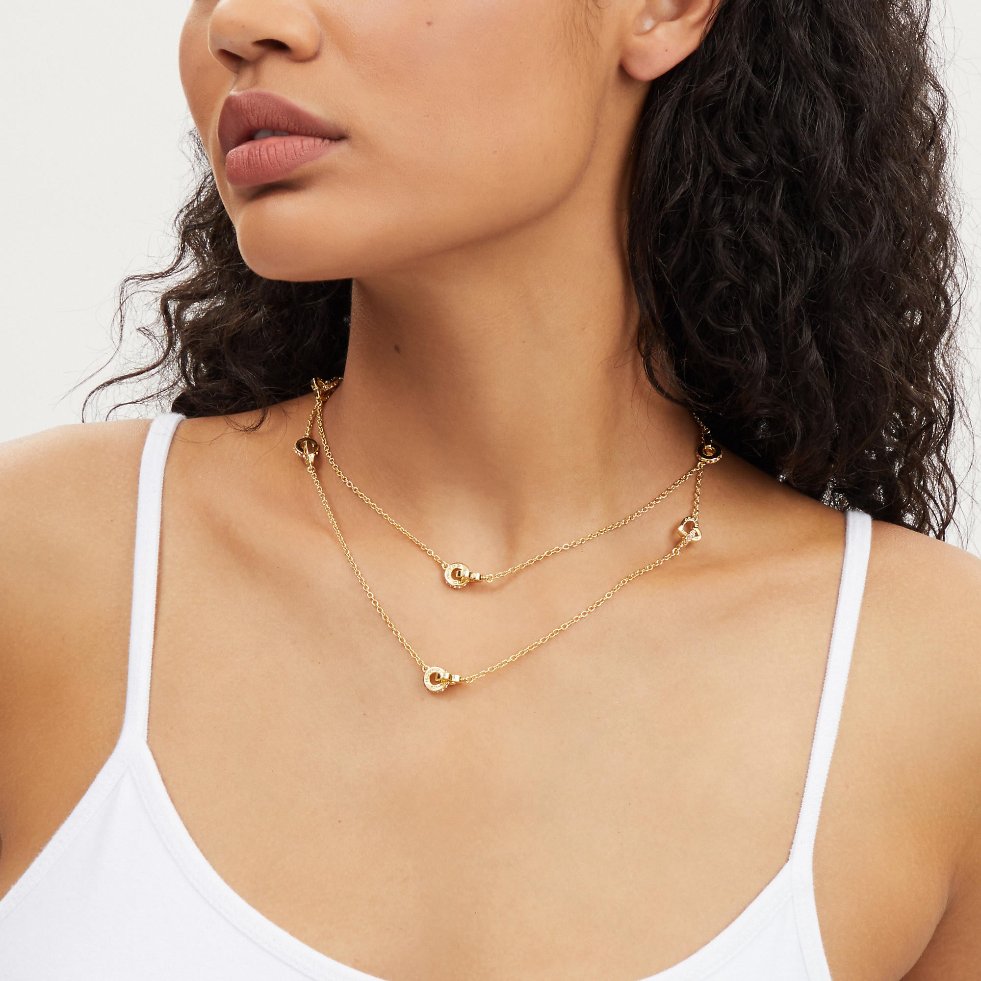 Plated brass glass and cubic zirconia Lobster clasp closure 34 (L) Style No. CQ477 | Outlet Interlocking Open Circle Heart Long Necklace - Yellow